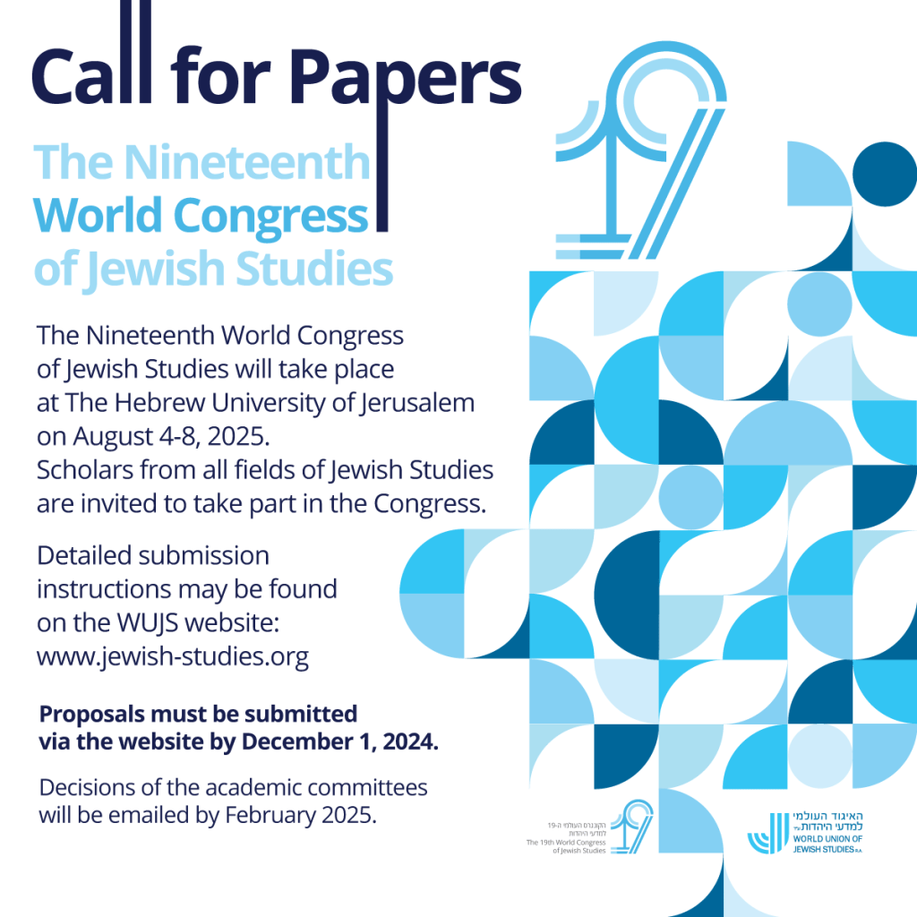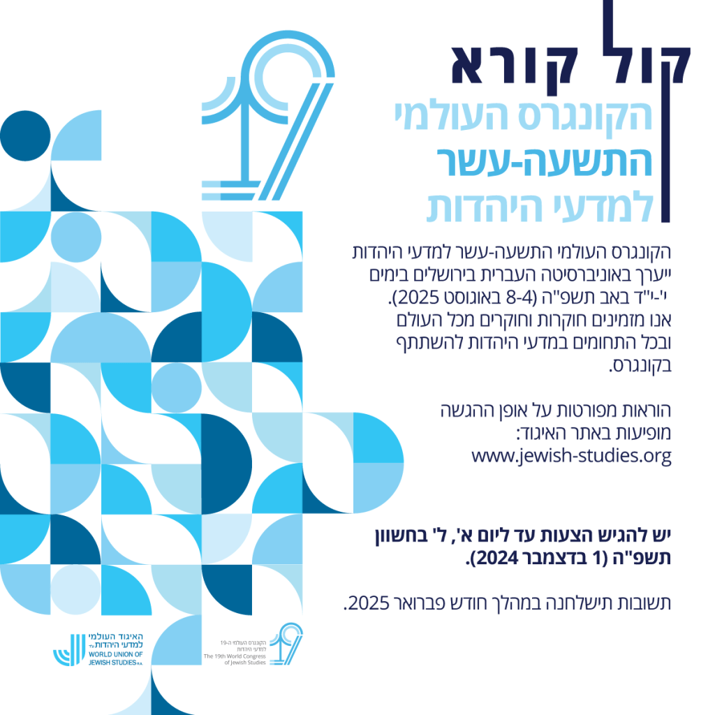 הקונגרס העולמי התשעה-עשר למדעי היהדות יתקיים בתאריכים י’‒י”ד באב תשפ”ה (8-4 באוגוסט 2025).